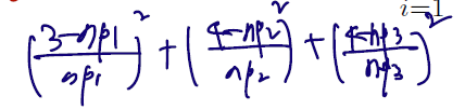통계량 Q는 각 확률변수에서 (관찰된 값- 기대도수)의 제곱을, 기대도수로 나눈 값을 더하게 된다. 그리고 이를 n개 자료에서 k개 범주의 자료가 있을 때 다음과 같이 확장할 수 있다.