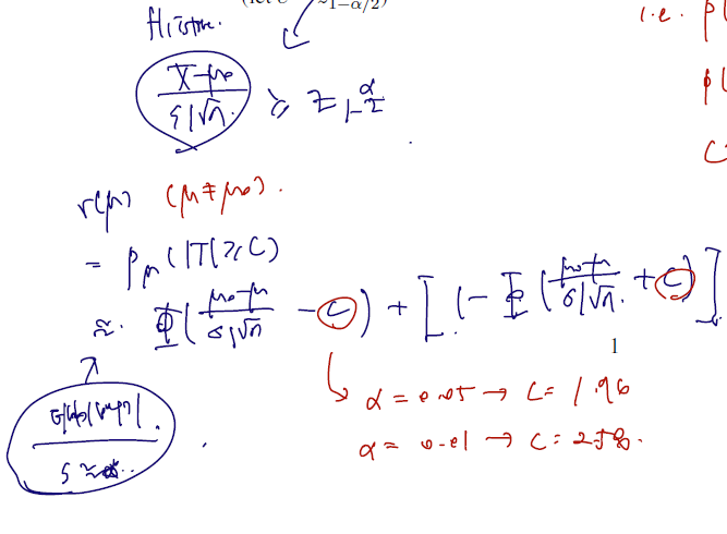 따라서 그래프로 이해하면 x축은 모평균이고, 이 모평균이 변함에 따라 귀무가설을 reject 할 확률도 따라 변하는데 이 확률을 표시해둔 것이다.