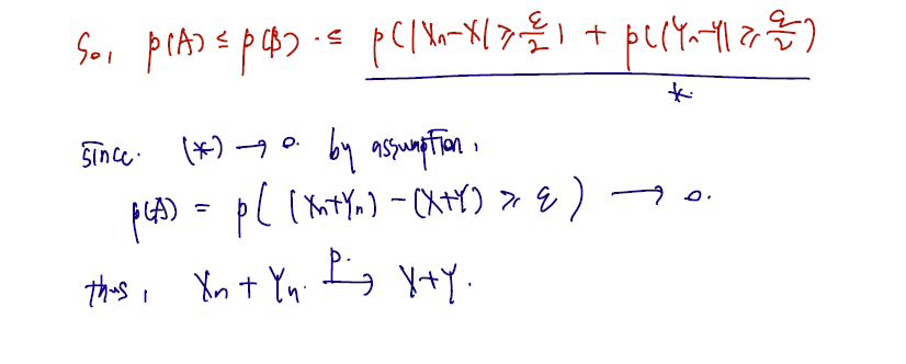 Theorem (additivity) Suppose XnPX and YnPY. Then Xn+YnPX+Y.