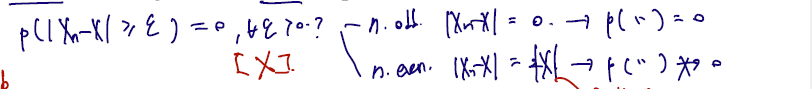 n이 odd 라면 p(0>=ϵ) 이므로, 엡실론은 임의의 양수로만 정의되므로 0인 반면에 n이 even 이라면 2|X| 가 된다. 이미 X는 N(0,1) 분포를 따르고 있으므로, 이 값이 앱실론보다 큼은 자명하다.