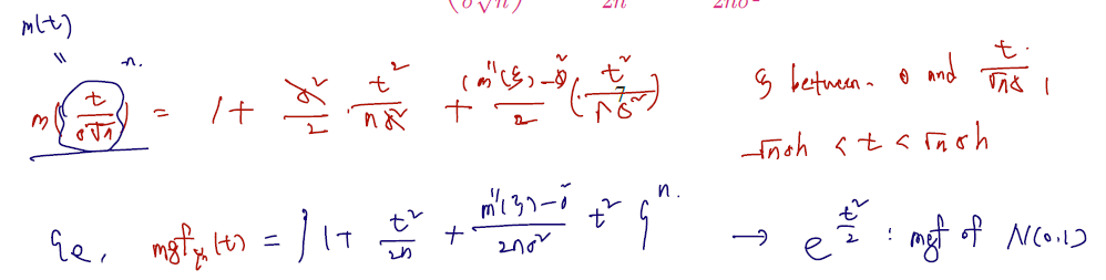 By Taylor's formula, there exists a number ξ between 0 and t such that (테일러 1차 전개 이용, m(t) at t=0, 0과 t사이에 ξ 가 있다고 하면 다음과 같다.)