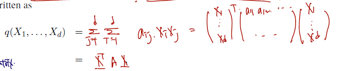 As in the linear algebra, the quadratic form (이차 형식) of random variables X1,…,Xd refers to a statistic written as