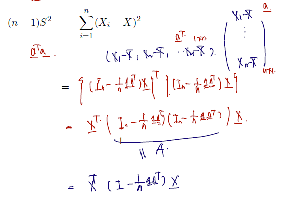 (X1−Xˉ,...,Xn−Xˉ) 를 a로 치환하고 나서는 다음을 잠깐 이용하도록 하자.