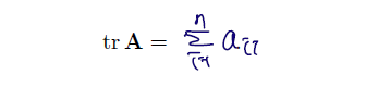 1) Remark (Review of trace). We make use of the trace (대각합) of a square matrix. If A=[aij] is an n×n matrix, then we define the trace of A,(trA), to be the sum of its diagonal entries; i.e.,