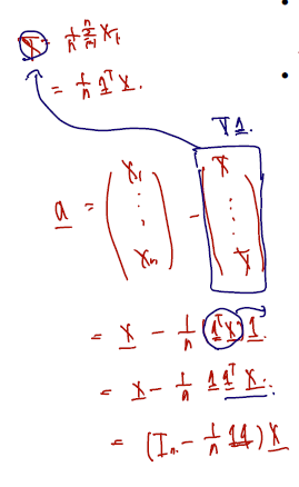 Is sample variance S2=n−11∑i=1n(Xi−Xˉ)2 is a quadratic form of X1,…,Xn ? (sol) Yes. Let X=(X1,…,Xd)T. Then,