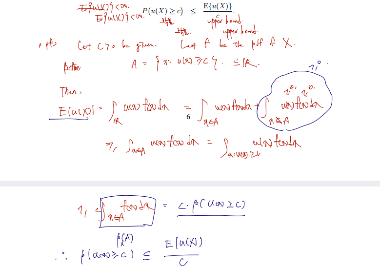 1. Markov's inequality. Let u(x):R→R be a nonnegative function. If E{u(X)} exists, then for every positive constant c, we have