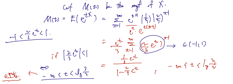 정의에 따라서 pmf 가 주어질 때 mgf를 구하는 과정과 특히나 과정서 범위를 유심히 살펴보자.