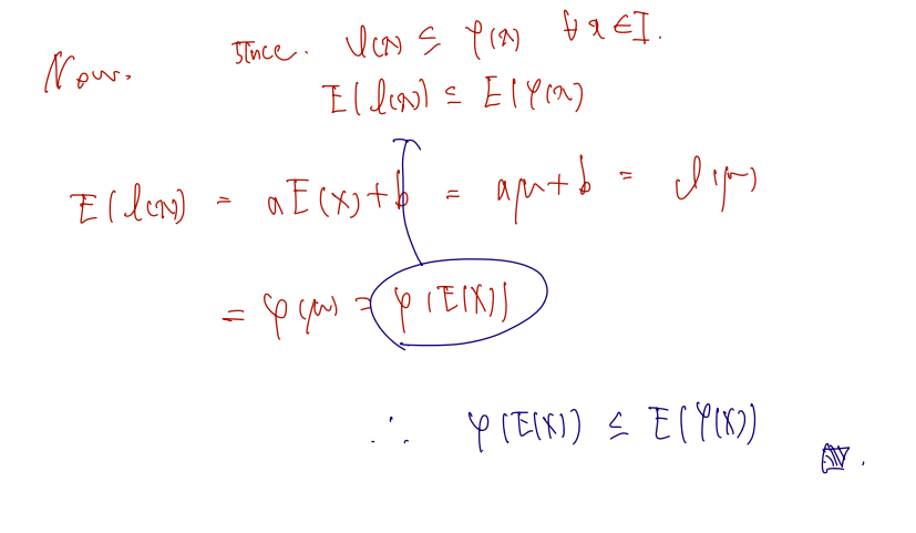 3.Jensen's inequality. Let φ be convex on an open interval I. Let X be a r.v. whose support is contained in I and E∣X∣<∞. Then, we have