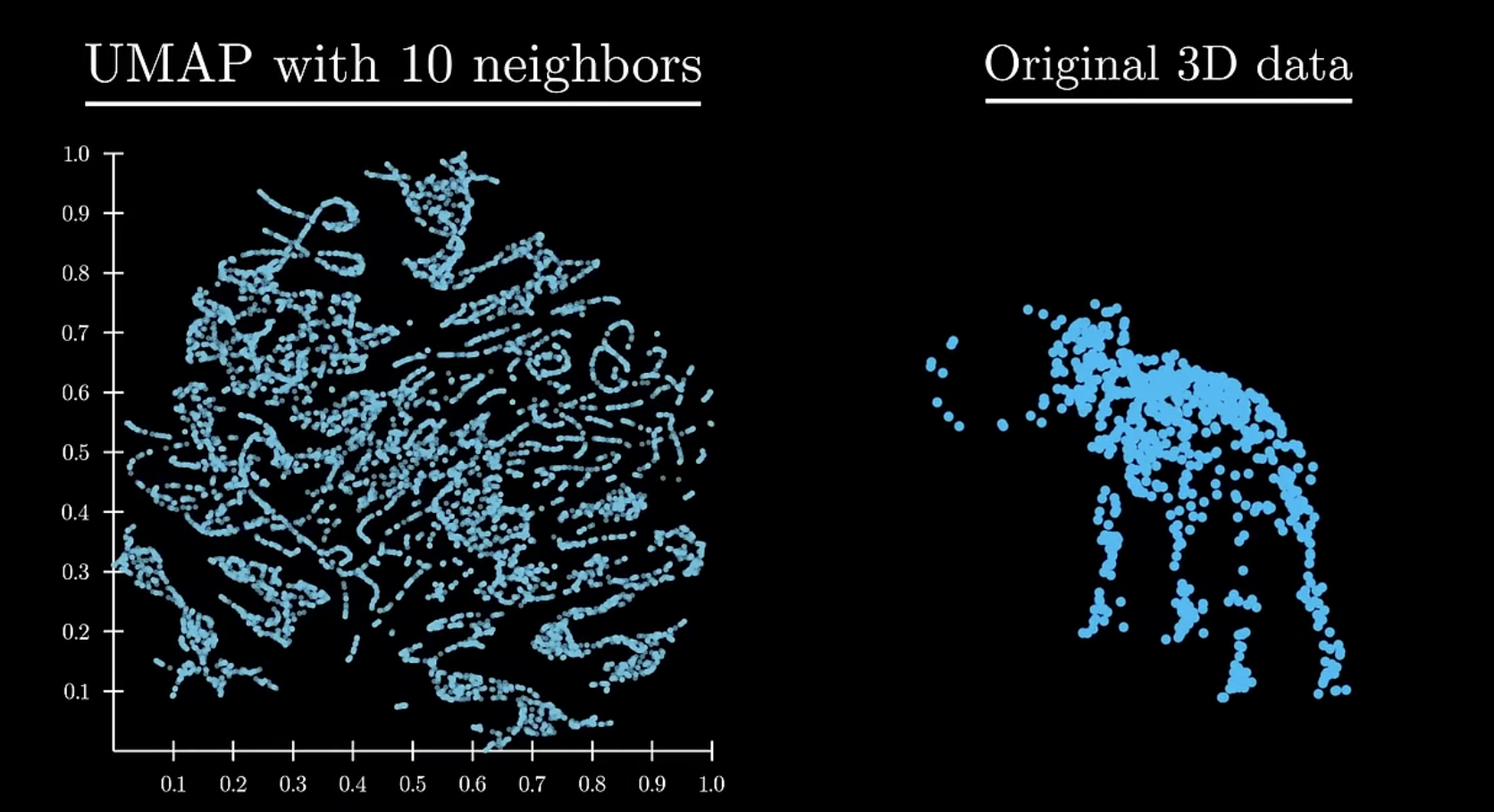 ํ์ง๋ง t-SNE๊ฐ ๊ฐ์ฐ์์ ๋ถํฌ์ ํ๋ฅ ๋ถํฌ๋ฅผ ์ฌ์ฉํ๋ ๊ฒ๊ณผ ๋ฌ๋ฆฌ,UMAP์ ๋์ ๊ทธ๋ํ๋ฅผ ์ฌ์ฉํ์ฌ ๊ณ ์ฐจ์ ๋ฐ์ดํฐ์ ์ ์ฐจ์ ๋ฐ์ดํฐ๋ฅผ ๋ชจ๋ ํํํ๋ค.