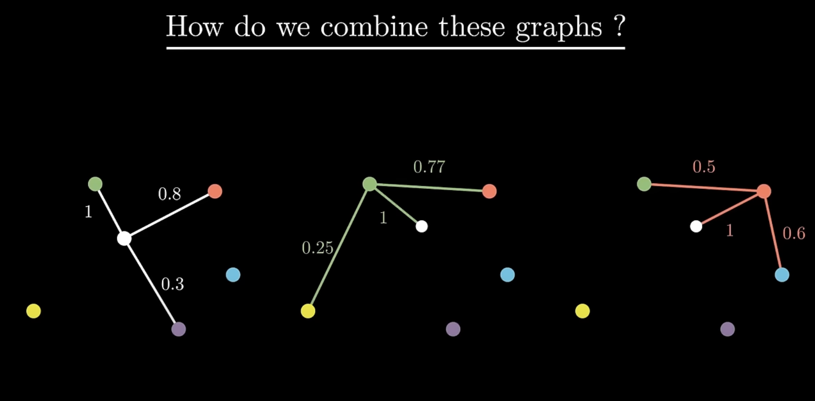 ์ฌ๊ธฐ์ 3๊ฐ์ ๊ทธ๋ํ๋ง ํ์๋ผ ์์ง๋ง, ๊ฒฐ๊ณผ์ ์ผ๋ก ์ํ๋น ํ๋์ ๊ฐ์ค์น ๊ทธ๋ํ๊ฐ ์์ฑ๋๋ฏ๋ก ๊ฐ ์ํ๋ณ๋ก ์์ฑ๋ ๊ฐ์ค์น ๊ทธ๋ํ๋ฅผ ํ๋์ ๋์นญํ๋ ๋จ์ผ ๊ฐ์ค์น ๊ทธ๋ํ๋ก ๊ฒฐํฉํ๋ค.