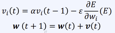 다음과 같은 수식을 보면 weight를 업데이트 하는 과정에서 vi(t)를 추가로 넣어주는 것을 통해 확인하면 된다.