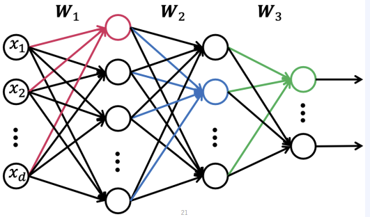 딥러닝에서 학습을 한다는 것은 f(x)=y=xw+b에 임의의 데이터 x가 들어가 나온 예측값인 y^ 과 실제 정답값인 y의 차 y^−y의 값(=Loss)을 최소화 하는 것을 목표로 파라미터 w=[w1,w2,....,wd,b]⊤ 를 학습(업데이트)하는 것을 의미한다.