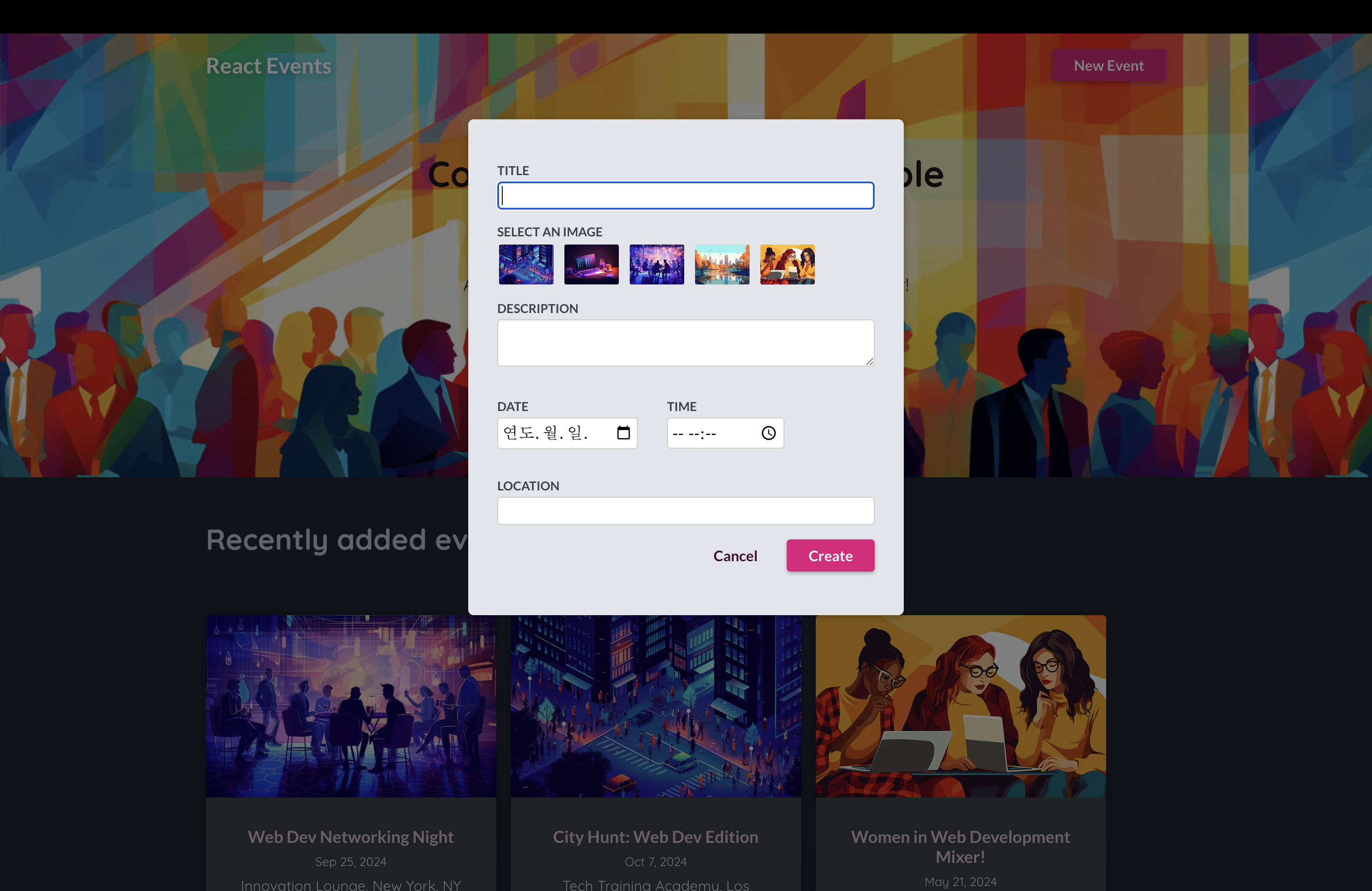 onSuccess:()=>{} : mutation이 성공할 때까지 새로운 이벤트를 생성하는 모달에 계속 머물게 한다.
