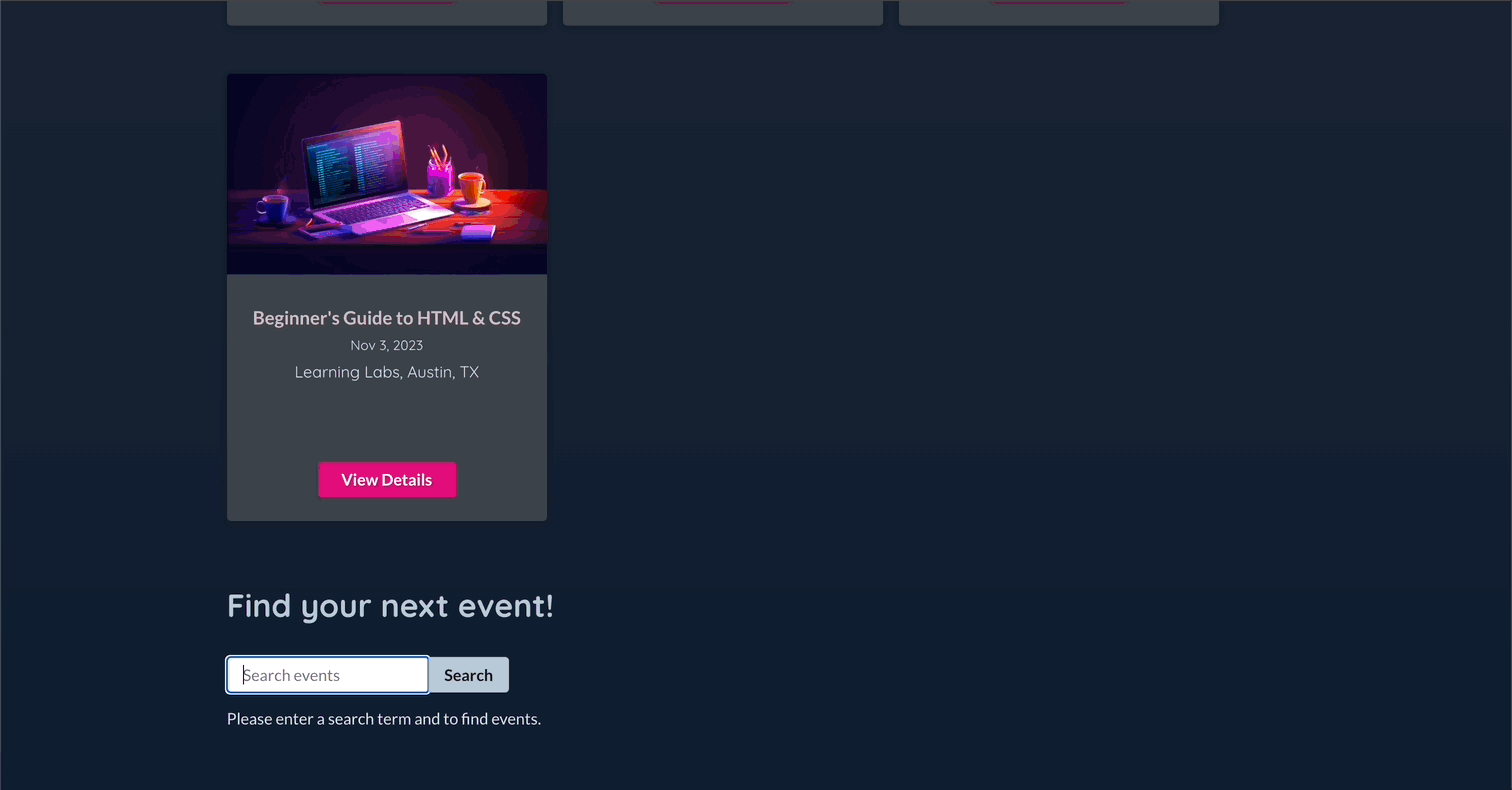 <ErrorBlock title="An error occurred" message="Failed to fetch events" />
