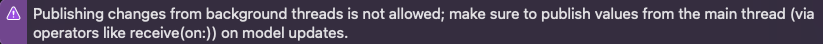 위 코드로 데이터를 뷰를 업데이트하는 변수의 값을 변경하게 될 경우 main thread가 아닌 background thread에서 UI 업데이트가 이루어져서 문제가 발생합니다.