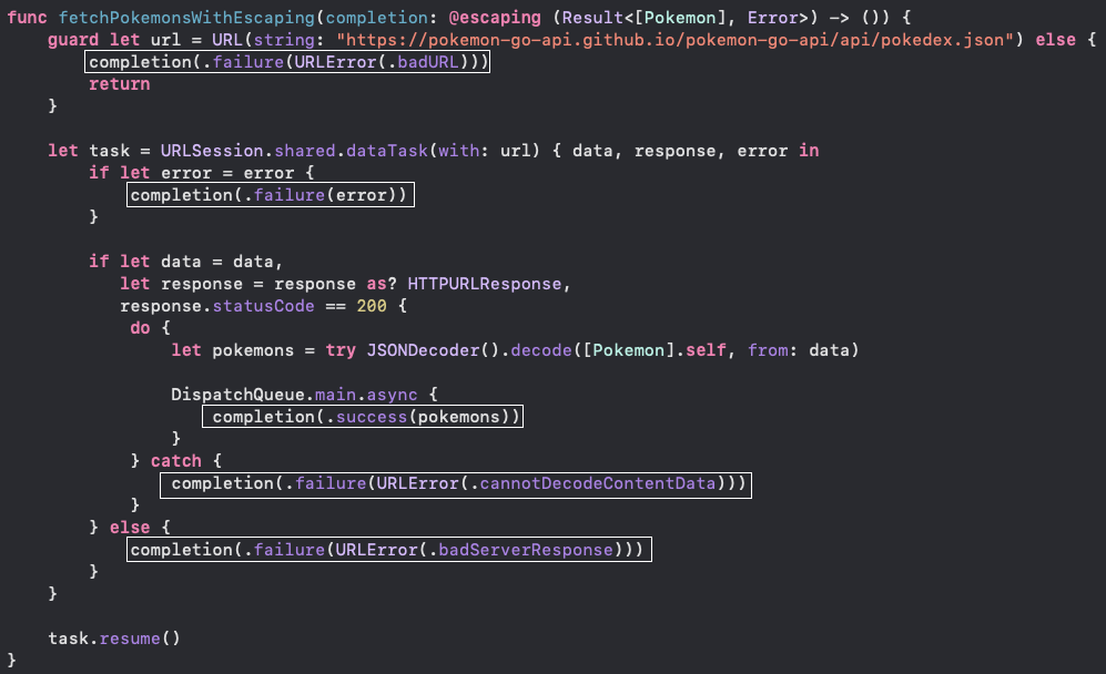 @escaping 키워드를 사용한 비동기 처리 예시모든 포켓몬의 정보를 불러오는 API를 예시로 사용해봤습니다.