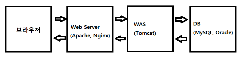 WAS(Web Application Server) : 클라이언트 요청에 대해 동적 처리가 이뤄진 후 응답