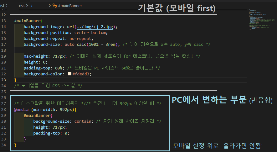 max-width: 768px <-아래쪽으로 내려갈수록 반드시 먹혀야 하는 것!