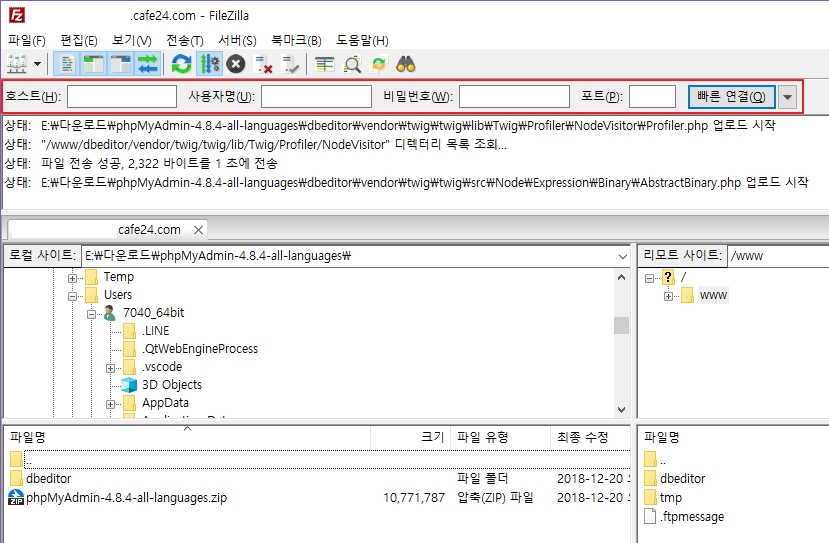 파일질라에서 www 폴더아래로 그누보드 옮김 -> 폴더이름 간단히 수정 sjy1