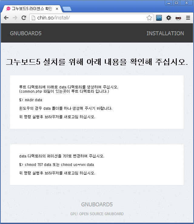 -----.cafe24.com/sir) data 폴더 만들고 -> 그누보드5설치시작 (MYSQL정보입력+최고관리자정보입력)