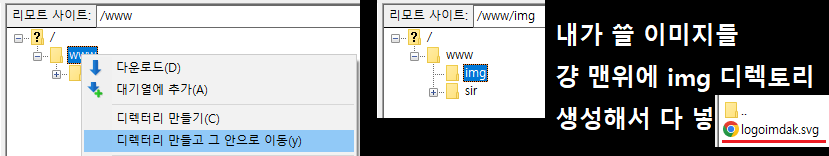(파일질라에서) 내가 쓸 이미지들 걍 www 바로 아래 img 디렉토리 생성해서 다 집어넣기