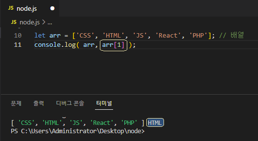 console.log( '나는 지금 ' + arr[ 2 ] + '를 공부하는 중이야' );
