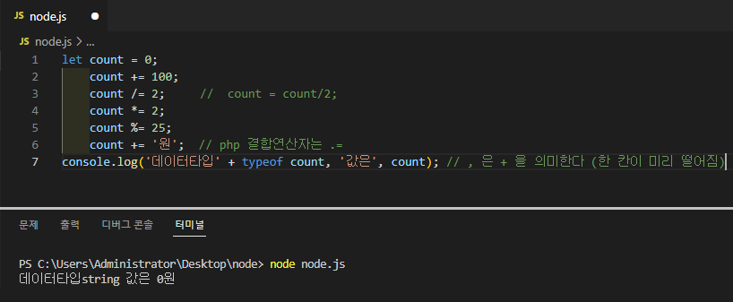console.log( '나는 지금 ' + arr[ i ] + '를 공부하는 중이야' );