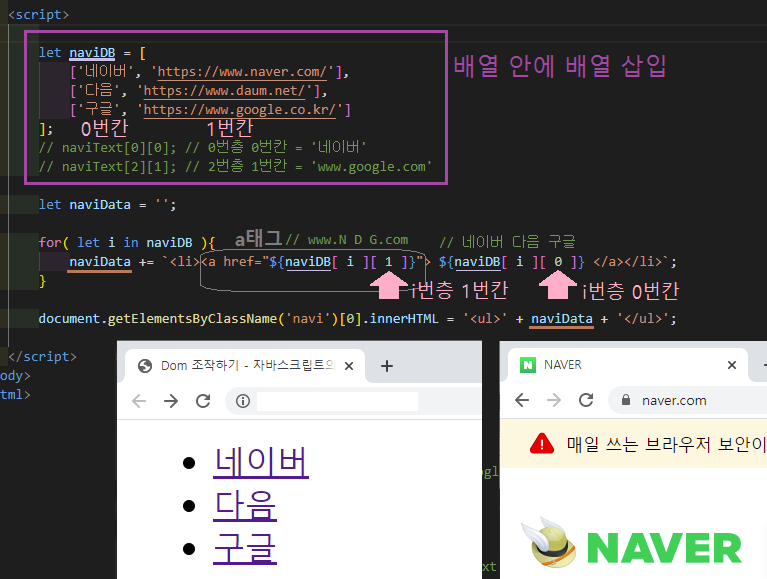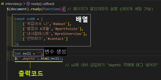 <!-- 자바스크립트로 네비게이션(배열) 삽입 -->