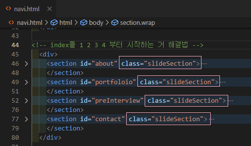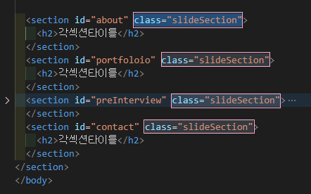 HTML 섹션에 class="slideSection" 삽입