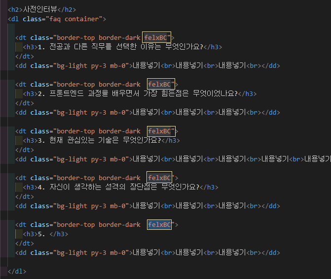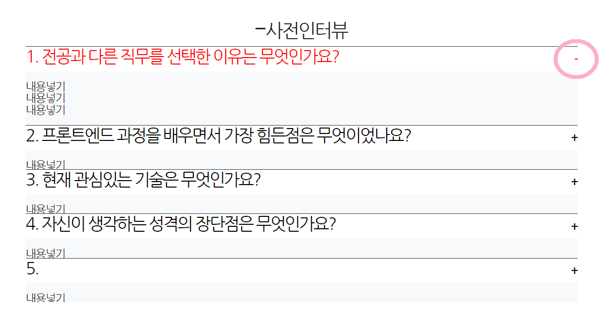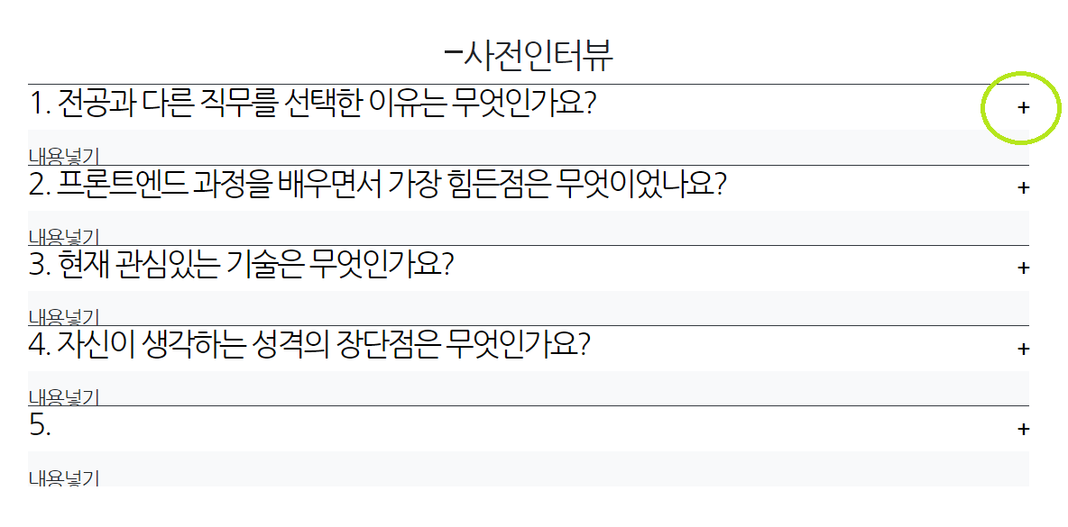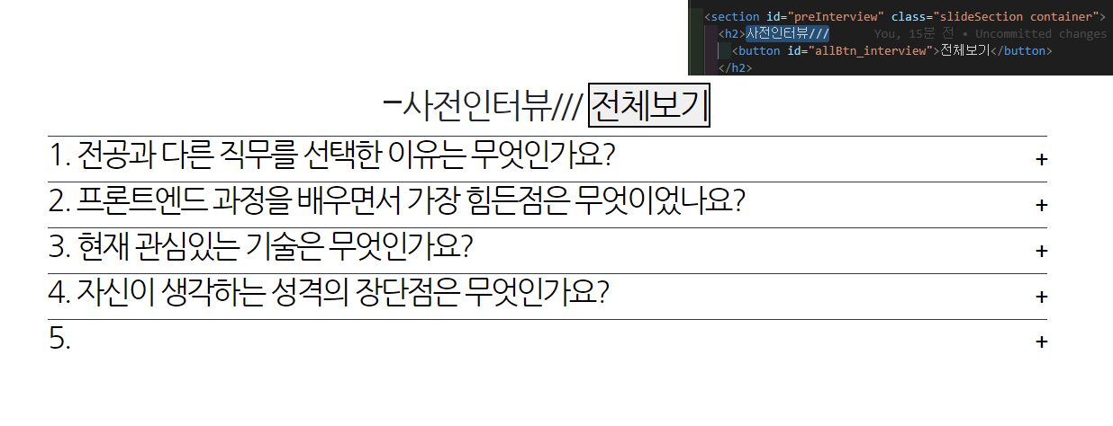#preInterview 섹션은 HTML에 작성한 그대로 화면 출력됨