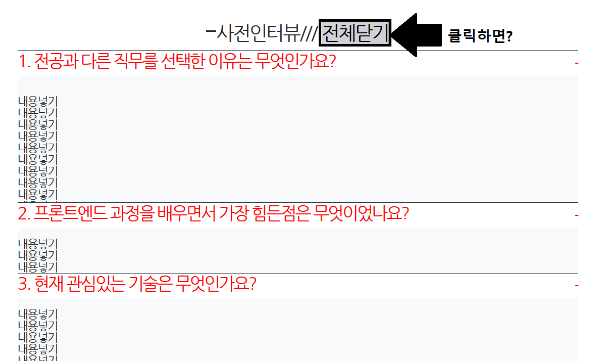 $(this).html('전체닫기') // 버튼 안쪽 글자를 긁어내고 '전체닫기' 덮어씌움