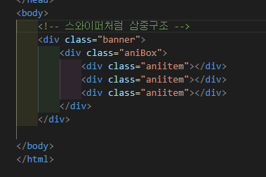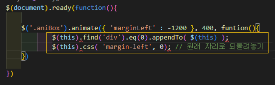 ① 이 객체(.aniBox) 맨 뒤에, div('.aniitem').첫번째 자식eq(0)을 appendTo밀어넣는다