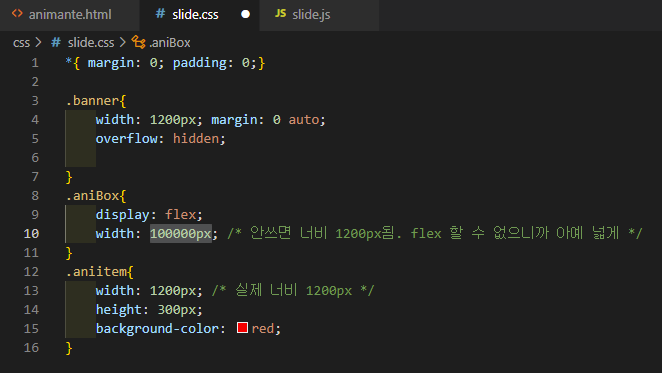 아이템을 left: -1200px로 이동시키는 것이 아닌, 걍 마진값 주는 건 상관없음.