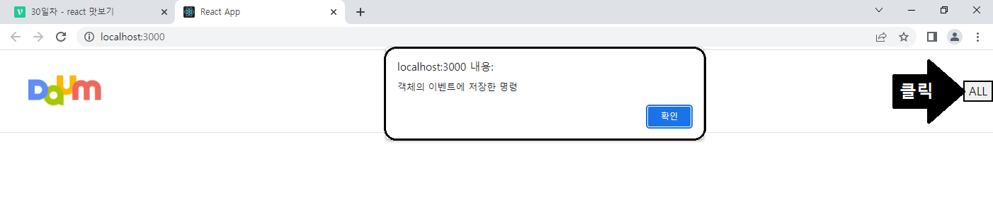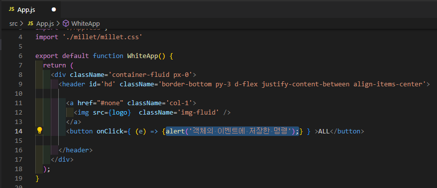 - (e) : 발생한 이벤트. 지금은 onClick
