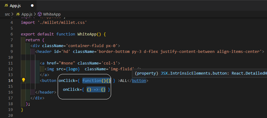 onClick={ 화살표함수 } 너를 클릭하면 실행(function)되라!