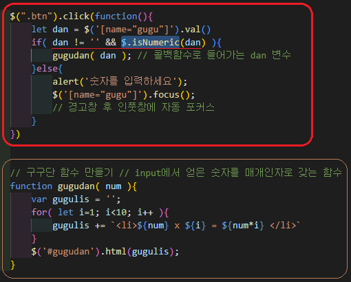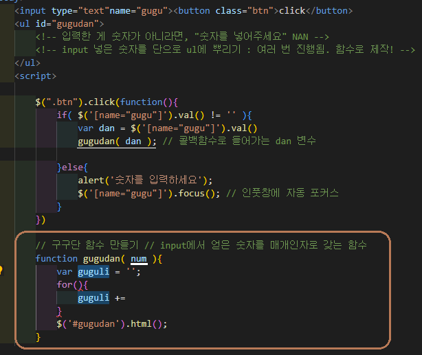 $('[name="gugu"]').focus(); // 경고창 후 인풋창에 자동 포커스