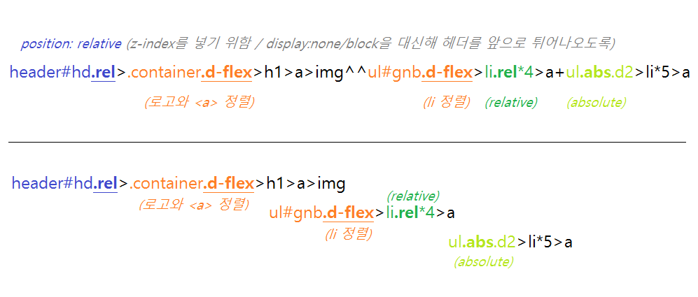 header#hd.rel>.container.d-flex>h1>a>img^^ul#gnb.d-flex>li.rel*4>a+ul.d2.abs>li*5>a