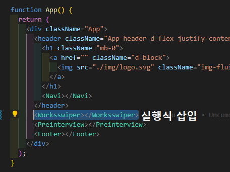 이대로 끝내면 스와이퍼가 나오지 않음. 실행식을 써줘야!