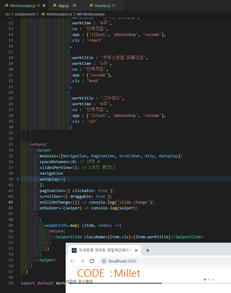 <SwiperSlide> 여기에 맵을 삽입/ slide 1 대신 DB json글자노출 </SwiperSlide>