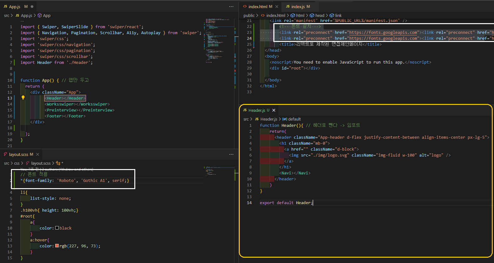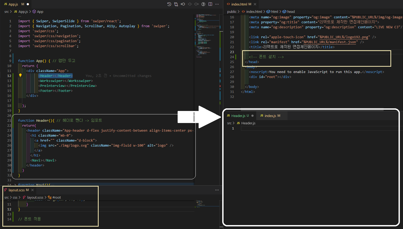 내보내면 export default Header; 임포트 받기 import Header from './Header';