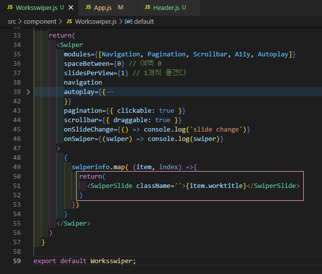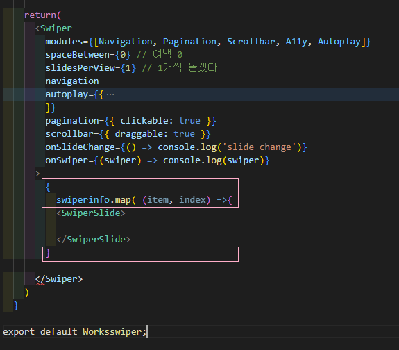 return문 안에 < SwiperSlide >< /SwiperSlide > 삽입