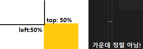 (1) left: 50%; top: 50%; 지정해도 가운데 정렬 NO!
