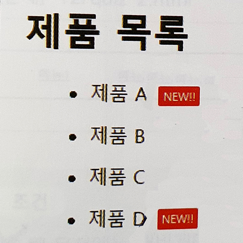 ex) ::after 가상 요소를 사용해 제품 목록에 'NEW'라는 텍스트를 추가