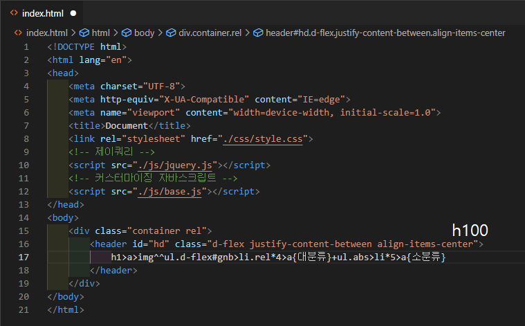 header#hd.d-flex>h1>a>img^^ul#gnb>li*4>a{대분류}+ul>li*5>a{소분류}