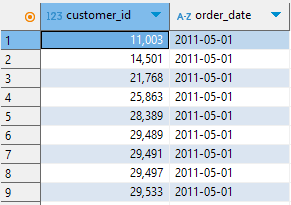 일단 이 문제를 풀면서 사용할 컬럼은 order_date와 customer_id 뿐이다.