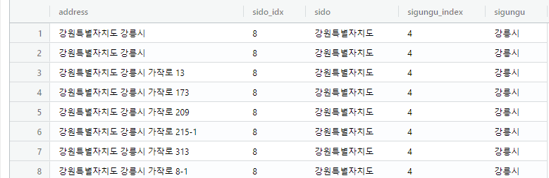 (5)다시 한번 더 문자를 자르고, 이번엔 sigungu로 넣는다
