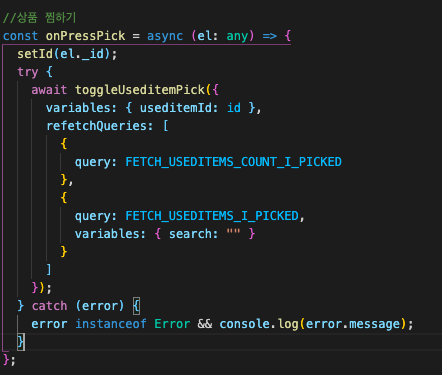 찜하기 버튼기능에 리패치를 넣어주어 간단하게 해결되었다.