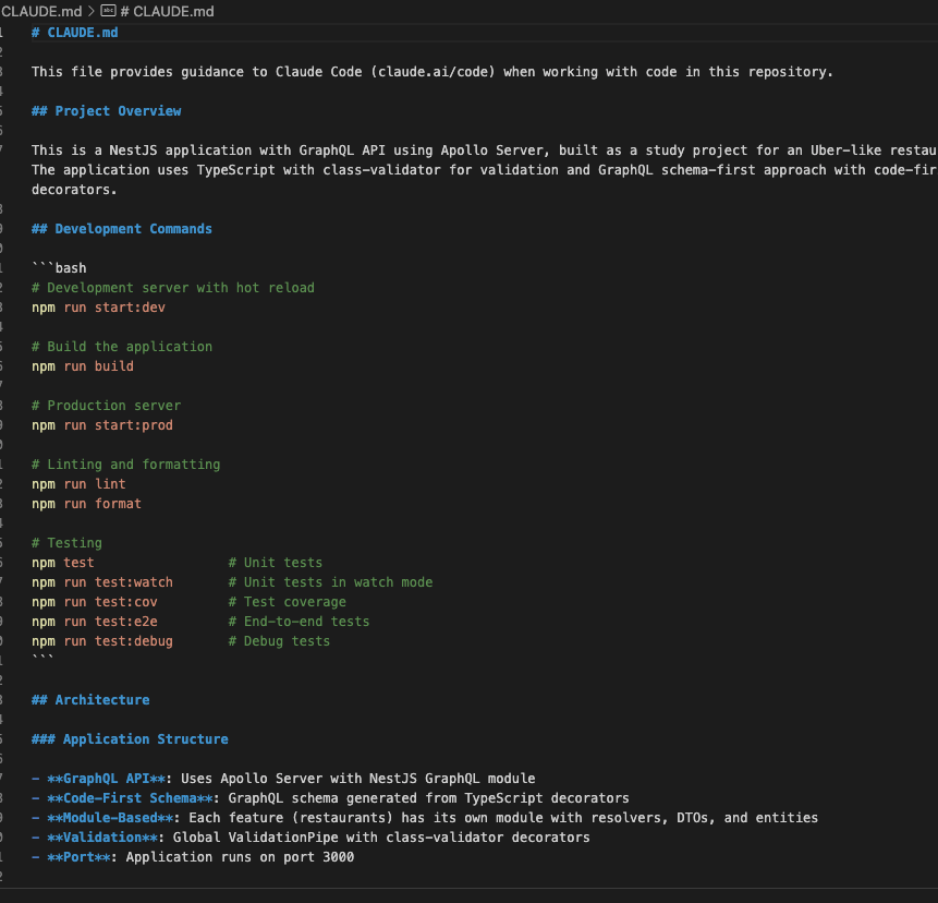 초기 세팅을 위해 먼저, '.claudeignore'을 생성/설정 해서 클로드 접근을 제한하는 문서를 구성한다. 그리고 /init 명령어를 사용한다. 사용하는 이유는 다음과 같은데, 현재 프로젝트 디렉터리를 설정하고, 필요한 초기 정보를 Claude에게 학습시키는 작업을 진행한다. 작업이 끝나면 CLAUDE.md 파일이 생성된다. 파일에는 해당 프로젝트 정보가 포함되어 있고 사람도 같이 확인할수 있다.