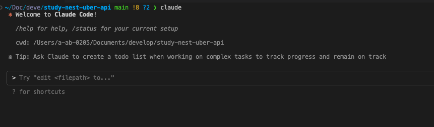 먼저 클로드 코드를 실행하기 위해서는 어느 터미널에서나 다음과 같이 입력하면 된다.