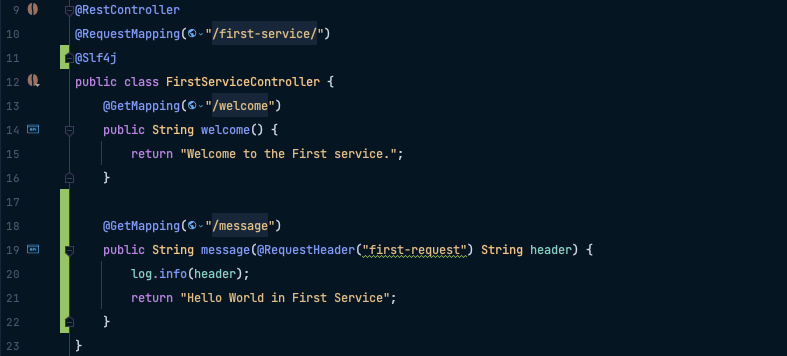 message함수에서 first-request라는 이름의 헤더에 담긴 헤더값을 header에 받습니다.